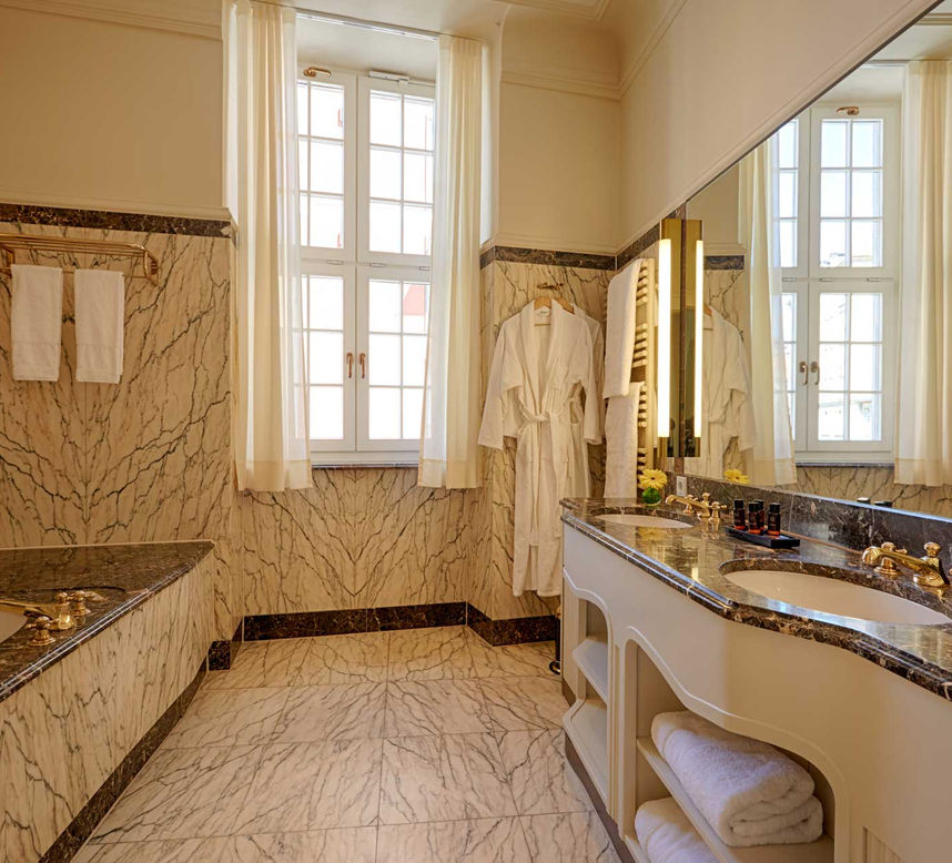 The 5 star modern-Baroque Gewandhaus Hotel is set in the heart of Dresden with the Frauenkirche, Semperoper Opera House, and Zwinger all in walking distance. Built between 1768 and 1770, behind the resplendent façade you will find all the amenities of modern times and experience the blend of individual design with comfort and historical elegance creating a fine symbiosis with the buildings history as a former clothier’s house. The boutique rooms are furnished with individually made designer furniture with large luxurious bathrooms decorated in Italian marble.